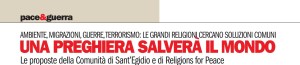 Una Preghiera salverà il Mondo” Nel mio articolo che ho pubblicato sul numero di settembre/ottobre de “Le Fiamme d’Argento”, la Rivista dell’Associazione Nazionale Carabinieri, parlo del dialogo interculturale e interreligioso che sta vivendo un momento di grande rilancio. Vengono presentate le iniziative internazionali che hanno coinvolto i rappresentati delle maggiori religioni mondiali su temi come ambiente, migrazioni, guerre, terrorismo, alla ricerca di soluzioni comuni. La Comunità di Sant’Egidio e Religions for Peace presentano le loro proposte: in due interviste il Prof. Alberto Quattrucci, Segretario Generale dell’Associazione Uomini e Religioni della Comunità e Luigi De Salvia, Presidente di Religions for Peace Italia delineano le prospettive future che emergono dagli incontri tra le più importanti fedi religiose.