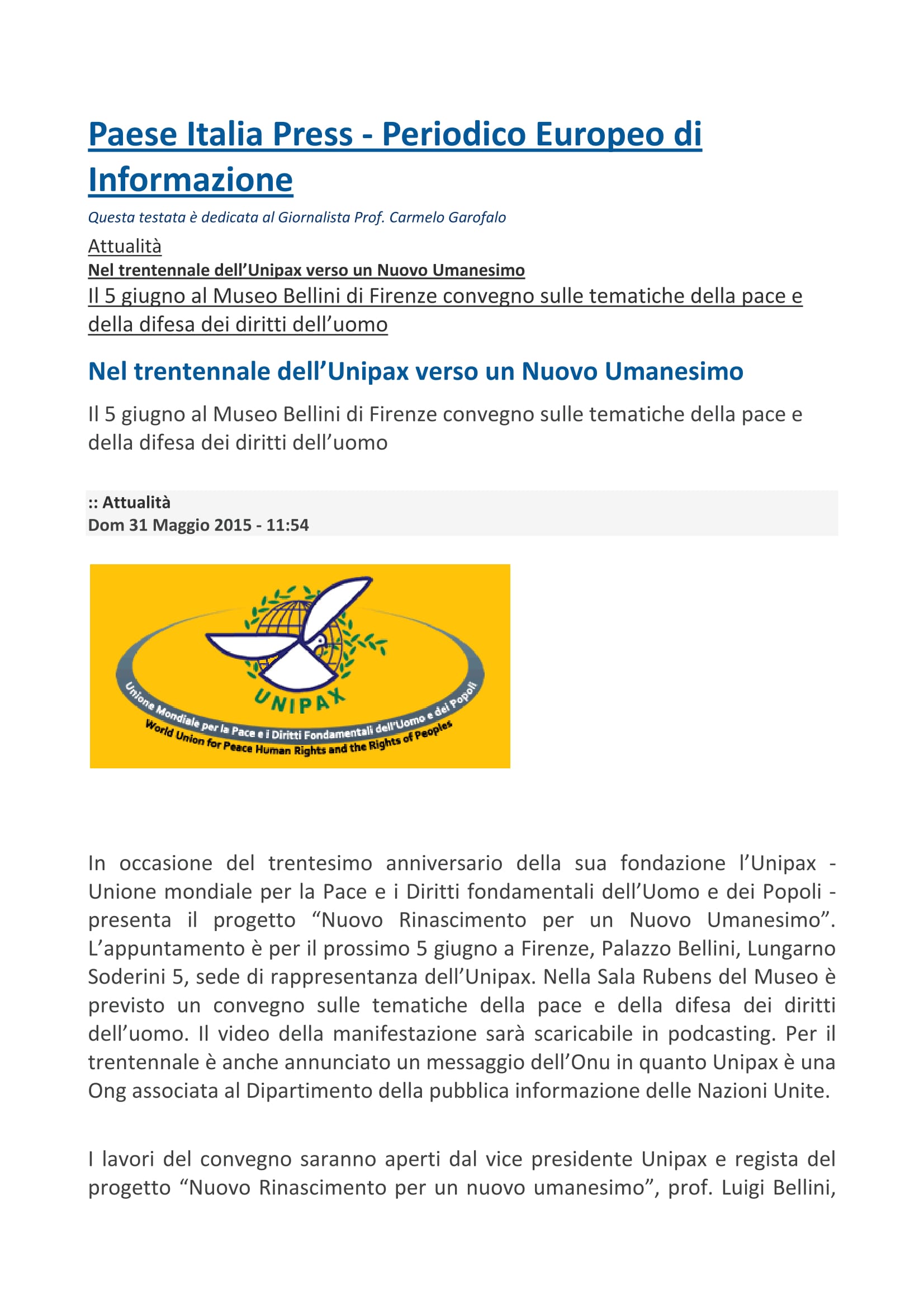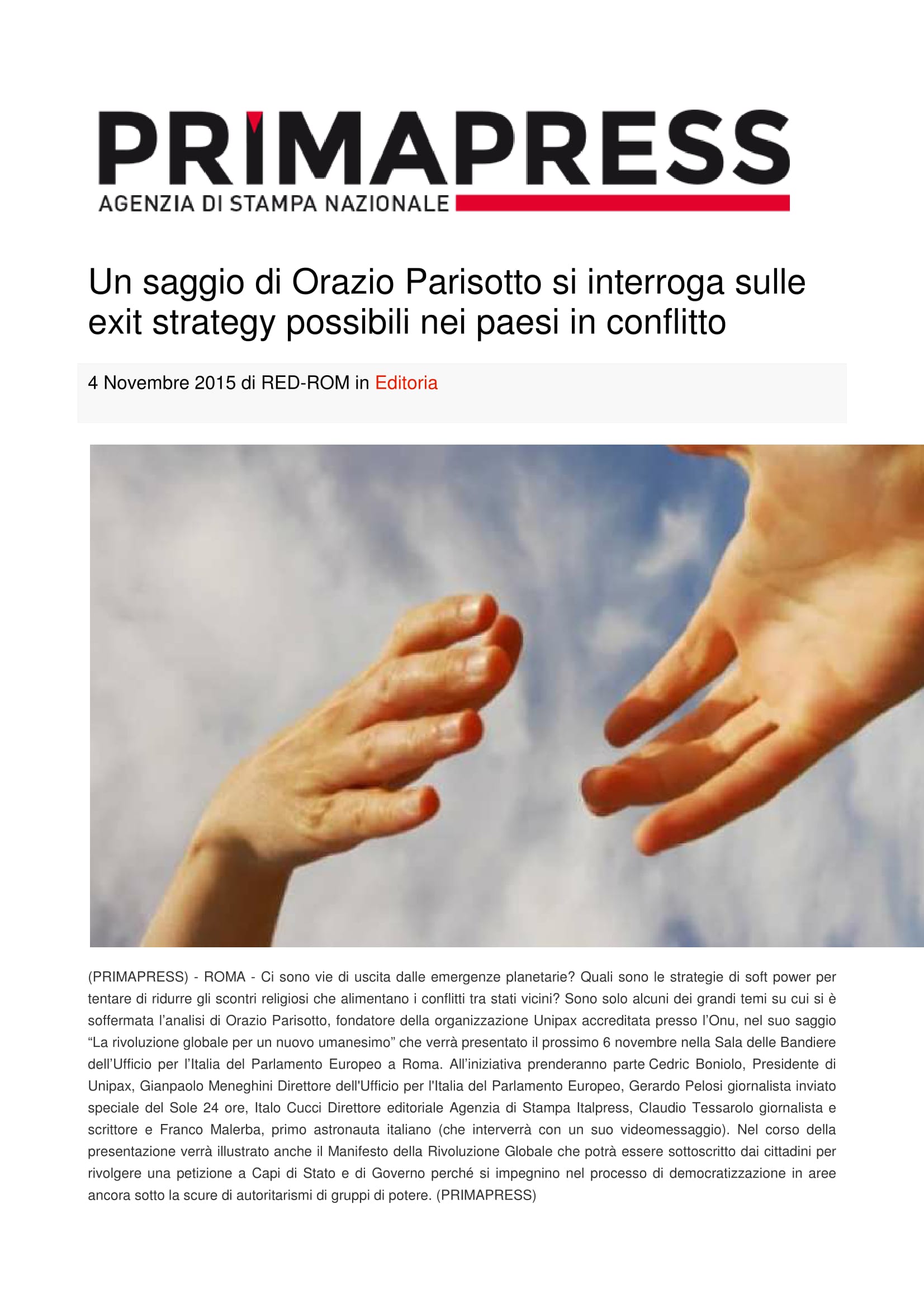 Articolo pubblicato sul magazine Calabria Live a firma di Giuseppe Nisticò che presenta il Progetto di United Peacers e il saggio di Orazio Parisotto “La Rivoluzione Globale Pacifica per un Nuovo Umanesimo”